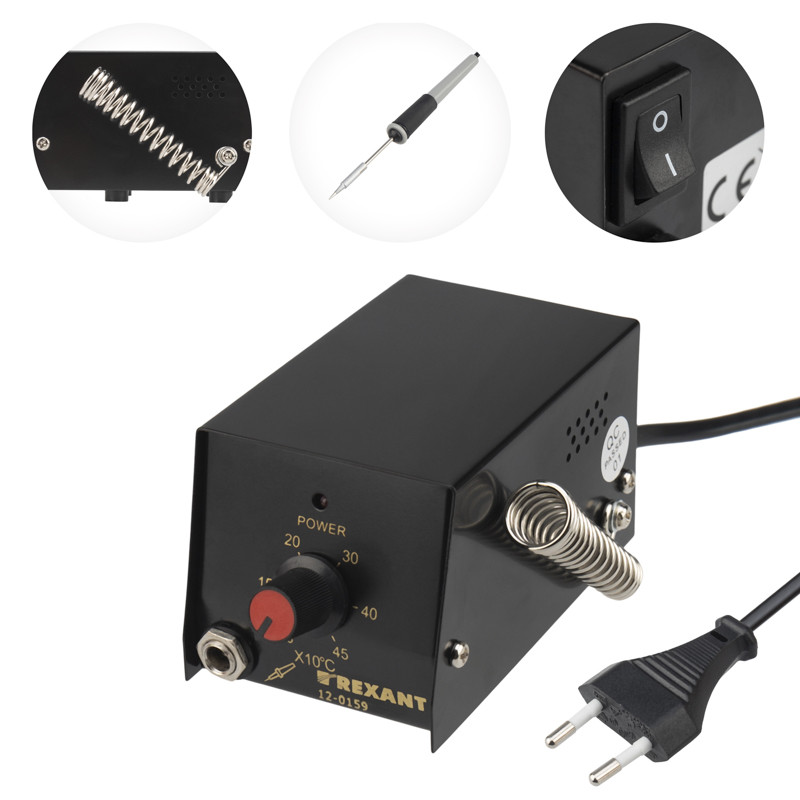 Паяльная станция (мини) REXANT предназначена для ручного монтажа радиоэлементов. Подходит как для любительских, так и для профессиональных паяльных работ. Устройство имеет сверхкомпактный размер, что позволяет экономить рабочее пространство. Температура нагрева жала варьируется в диапазоне от 100 до 450 градусов и регулируется с помощью механического потенциометра. Станция комплектуется миниатюрным низковольтным (12 В) паяльником.