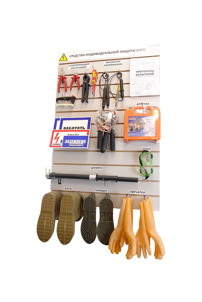 Изделие защищает СИЗ от механических повреждений и обеспечивает их исправность и готовность к применению. Стенд располагается у входа в помещение и вблизи силовых щитов.