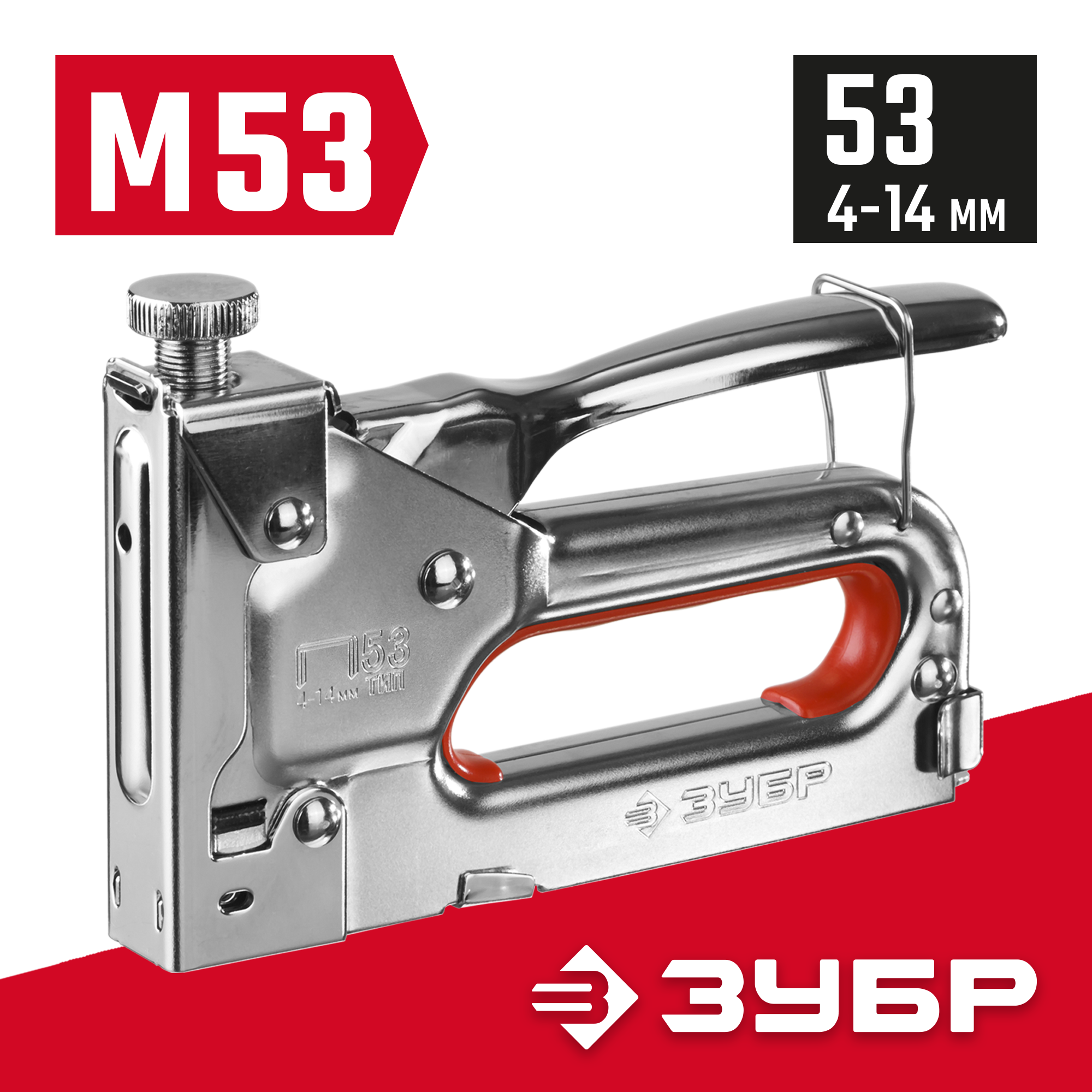 Степлер стальной тип 53(4-14мм), Мастер-53 выполнен в прочном и качественном стальном корпусе. Обладает надежностью и долговечностью в эксплуатации. Служит для крепления материалов между собой при помощи скоб различных размеров. Встроенный механизм регулировки ударов повышает эффективность в работе.