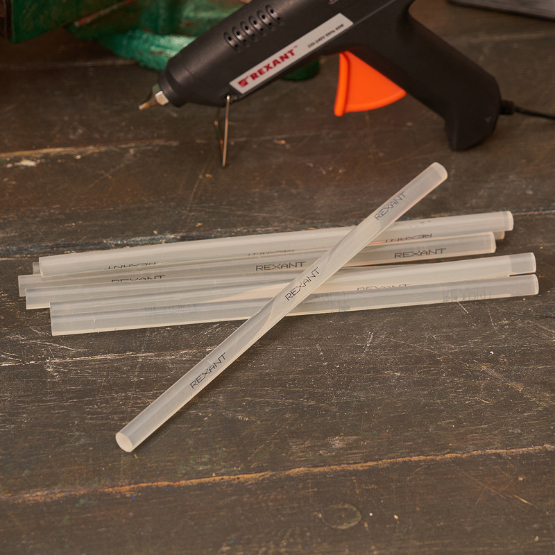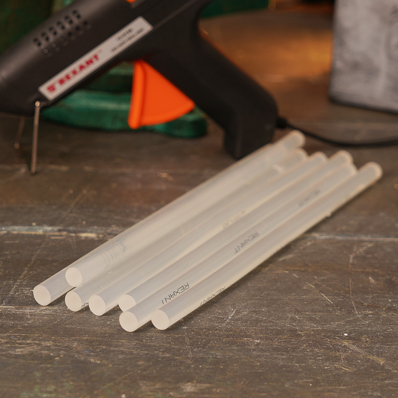 Клеевые стержни используются совместно с клеевыми пистолетами. Предназначены для склеивания поверхностей различных материалов – дерева, металла, пластмассы, керамики, картона, бумаги, ткани, кожи, резины, стекла. Используются в ремонте, декорировании, в изготовлении поделок и моделировании, будут полезны как на производстве, так и в быту. Изготовлены из ЭВА, поэтому полностью экологичны и безопасны при соблюдении правил использования. Обладают высокой скоростью и надежностью склеивания. Время застывания зависит от количества расплавленной массы. Благодаря длине стержней пистолет не придется часто перезаряжать. Используются с клеевыми пистолетами с каналом для стержней соответствующего диаметра. Набора из 10 клеевых стержней хватит для выполнения большого объема работ.