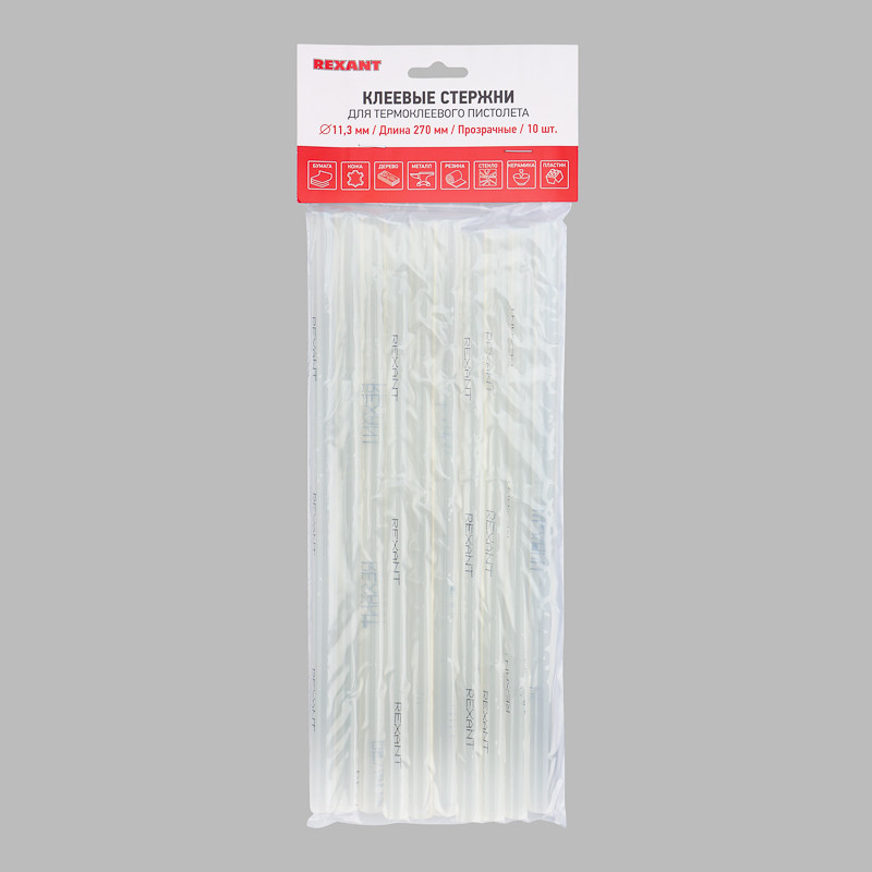 Стержни клеевые d-11мм, 270 мм, прозрачные, 10 шт (REXANT) 09-1270