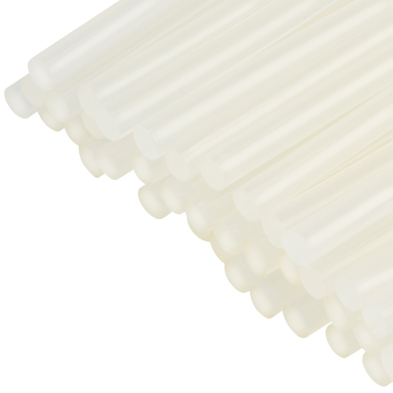 Клеевые стержни используются совместно с клеевыми пистолетами. Предназначены для склеивания дерева, металла, пластмассы, керамики, картона, бумаги, ткани, кожи, резины, стекла. Изготовлены из ЭВА, поэтому полностью экологичны и безопасны при соблюдении правил использования. Обладают высокой скоростью и надежностью склеивания. Время застывания зависит от количества расплавленной массы. Благодаря длине стрежней пистолет не нужно часто перезаряжать. Одного килограмма стрежней (около 37 штук) хватит при выполнении большого объема работ.