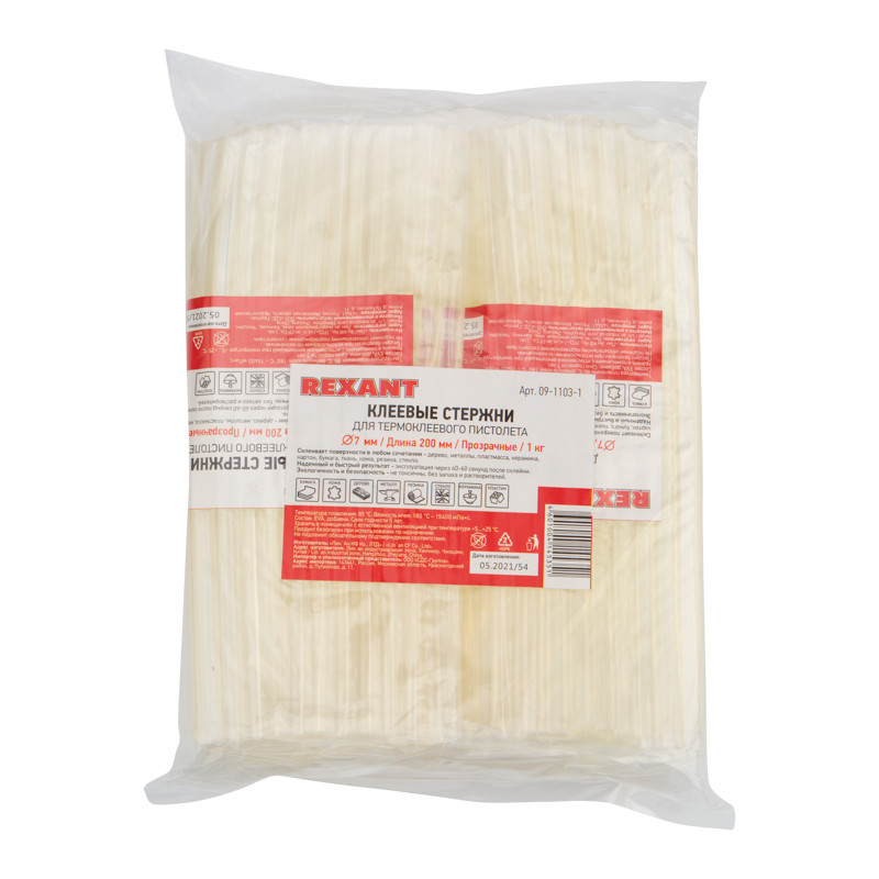 Полное описание товара Стержни клеевые диаметр 7 мм, 200 мм, прозрачные, 1 кг (пакет) (REXANT) 09-1103-1