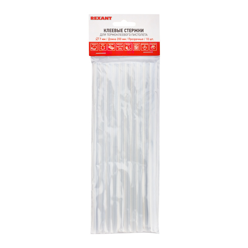 Стержни клеевые диаметр 7 мм, 200 мм, прозрачные (упак - 10 шт.) (REXANT) 09-1103