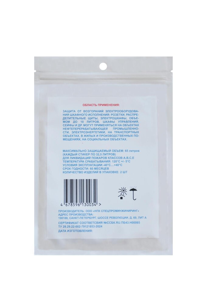 Стикер огнетушащий с микрокапсулами для электрошкафов обьемом до 65 л (Огнёвщик) 2225