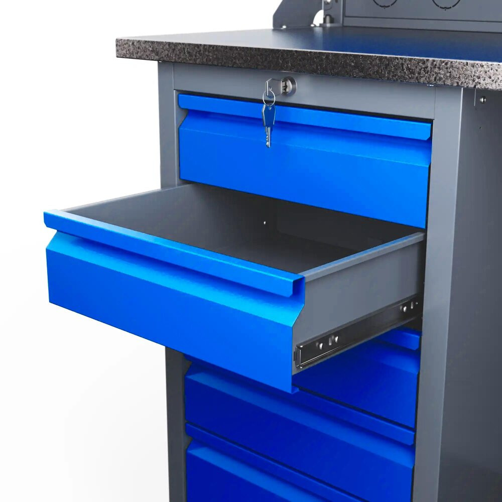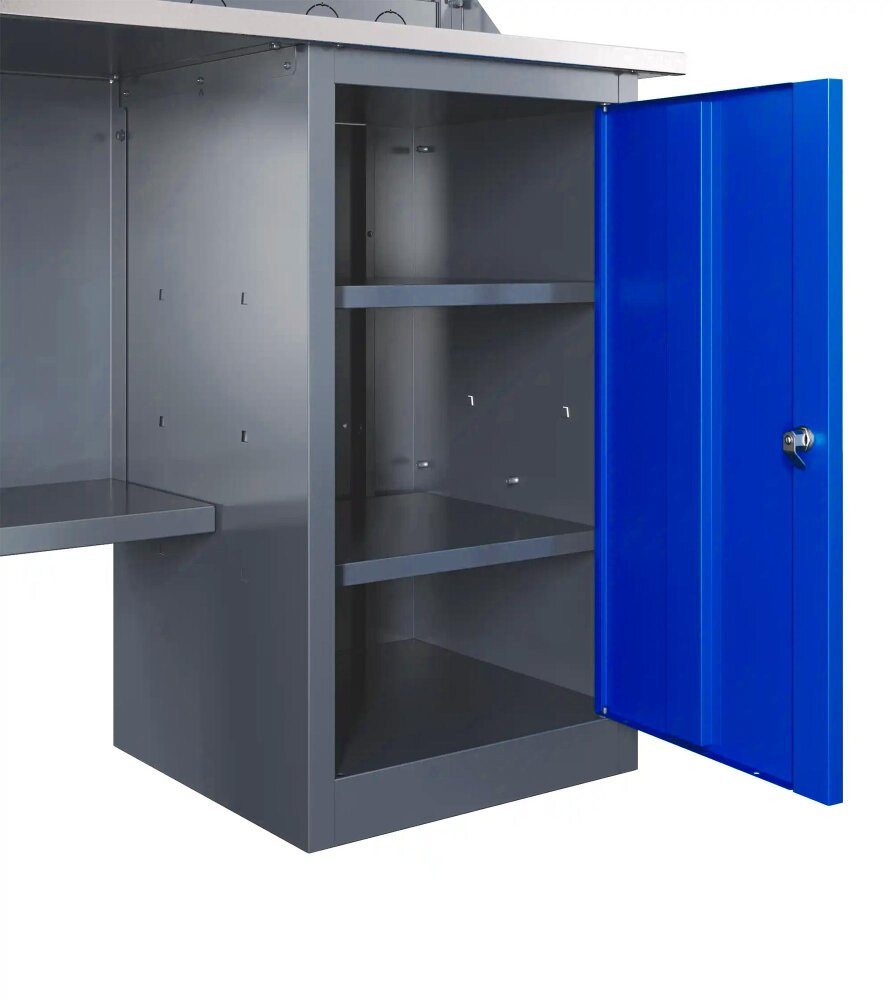 - Преимущества: Установка одинарного двойного экрана|Установка промышленного освещения|Унифицированная перфорация экранов|Тумбы с системой центрального запирания|Возможно подключение блока коммуникаций