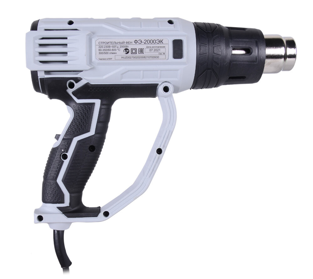 Строительный фен - ручной электроинструмент, предназначенный для обработки горячим воздухом поверхностей и материалов, для удаления красок, формования и сварки пластмассы, нагревания термоусадочных труб, инструмент также подходит для пайки и лужения, размягчения клеевых соединений (швов), а также размораживания водопроводных труб.Строительный фен предназначен для эксплуатации при температуре окружающей среды от -10С до +40С, относительной влажности воздуха не более 80% и отсутствии прямого воздействия атмосферных осадков и чрезмерной запылённости воздуха. Особенности: Простое управление. Прибор оснащён ступенчатым переключателем, задающим три режима регулировки воздушного потока.Безопасность в эксплуатации. Закрытая рукоятка - залог безопасной работы.