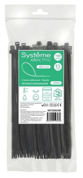 Полное описание товара Стяжка кабельная MultiSet 200х2.5 Чёрная (100шт) (Systeme Electric) IMT20025B