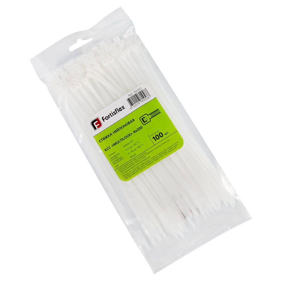 Полное описание товара Стяжка нейлоновая КСС «MULTILOCK» 4х200 (бел) (100шт) (Fortisflex) 102302