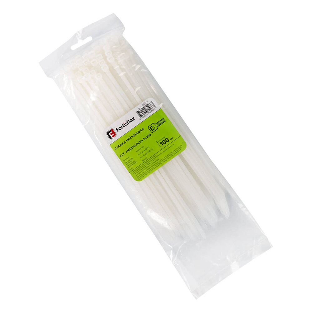 Полное описание товара Стяжка нейлоновая КСС «MULTILOCK» 5х250 (бел) (100шт) (Fortisflex) 102306