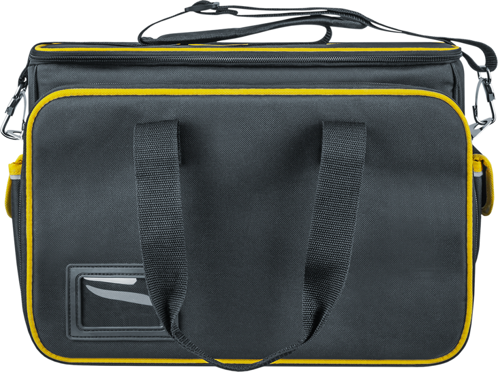 Сумка-портфель монтажника Navigator серии NTA-Bag06 используется для переноски и хранения инструмента, электроизмерительных приборов, монтажных принадлежностей и средств индивидуальной защиты. Портфельная конструкция прямоугольной формы имеет одно большое и два малых отделения, что позволяет переносить как инструменты, так и бумажную документацию, а также планшеты и ноутбуки. Прочный синтетический водоотталкивающий материал Oxford 600 надежно защищает инструменты и электромонтажные принадлежности от влаги. Ремень с мягким наплечником и прочными металлическими карабинами обеспечивает равномерное распределение нагрузки в процессе ношения. Различные внутренние и наружные карманы позволяют аккуратно разместить все необходимые инструменты и аксессуары. Откидные отделения по бокам и двойные замки для удобного и быстрого доступа к инструментам.