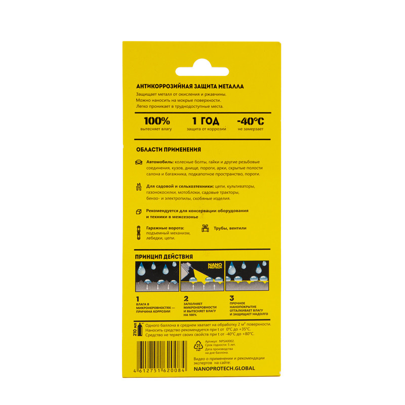 Долговечная защита от коррозии. Мощная и долгосрочная защита от любых агрессивных воздействий. Прочное невидимое нанопокрытие надёжно защитит от коррозии внешние и внутренние поверхности всех видов транспорта, промышленного, сельскохозяйственного и строительного оборудования минимум на 1 год.