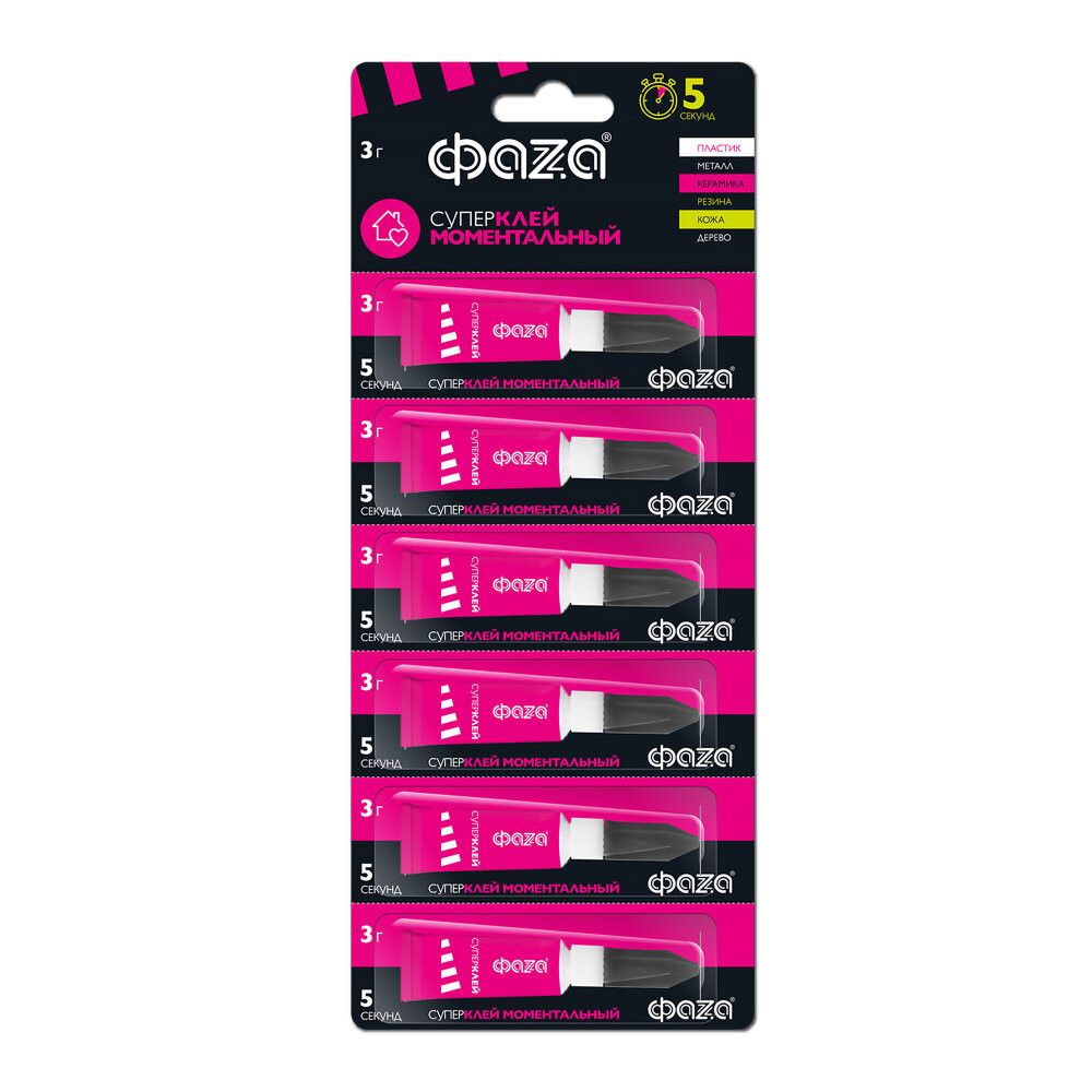 Полное описание товара Супер-клей прозрачный GSp- 3x 6 BL-6 (лента) 3г ФАZА (ФАZА) 5044050