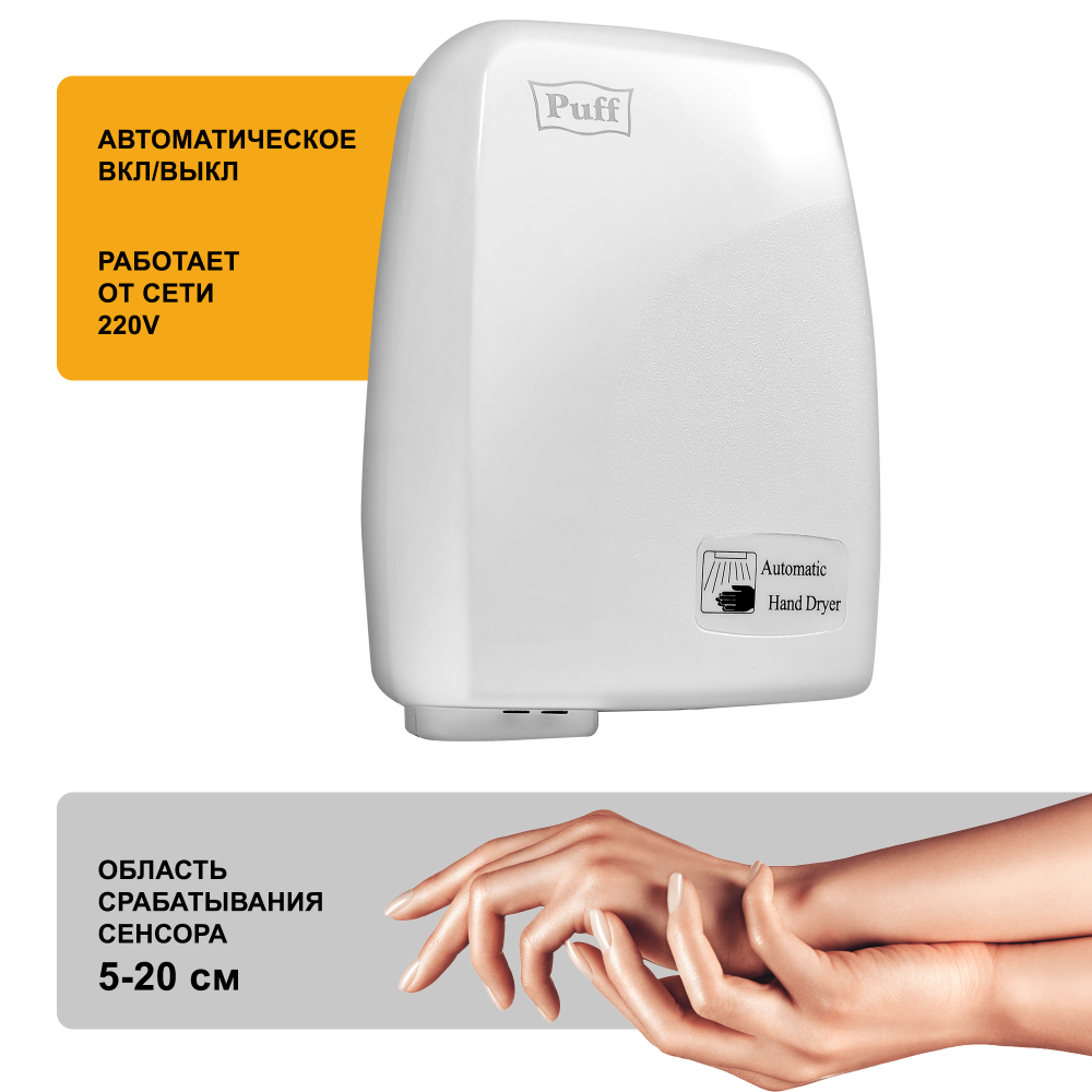 Полное описание товара Сушилка для рук электрическая PUFF-120, 1.2 кВт (PUFF) 1401.334