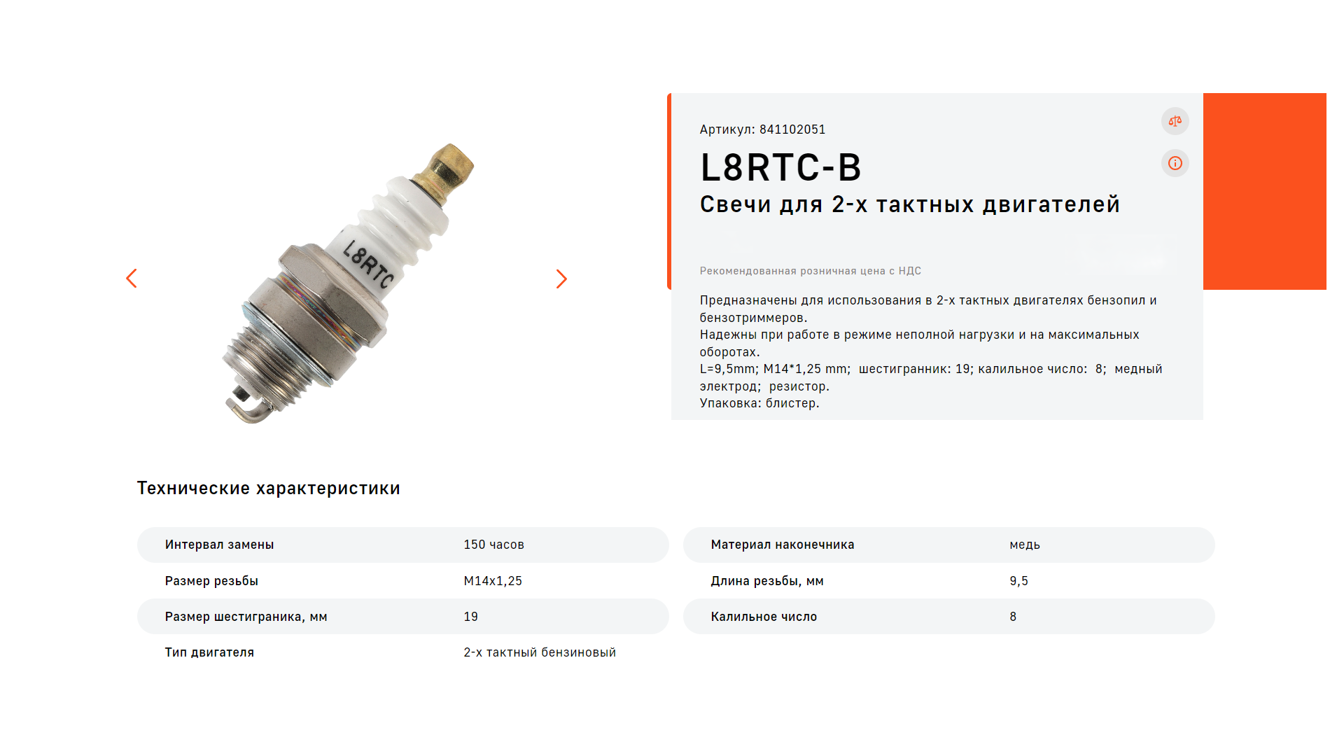 Предназначены для использования в 2-х тактных двигателях бензопил и бензотриммеров. Надежны при работе в режиме неполной нагрузки и на максимальных оборотах. L