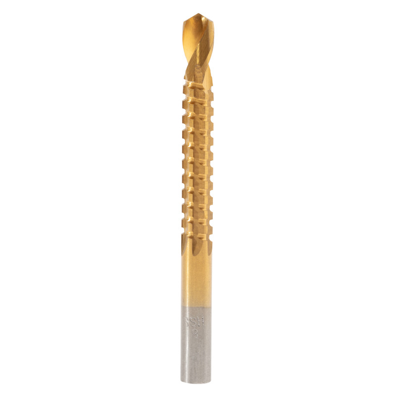 - Преимущества: Быстрорежущая сталь HSS с легирующими элементами обладает высокой прочностью и долговечностью|Нитрид титановое покрытие защищает сверло-фрезу от коррозии и перегрева|Инструмент позволяет сверлить и фрезеровать отверстия, что ускоряет работу