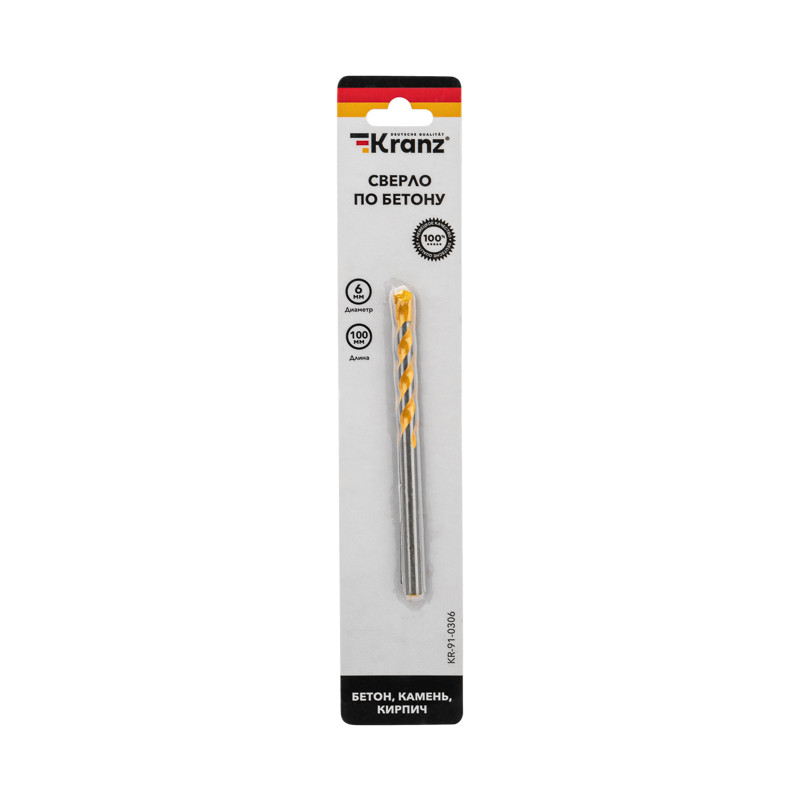 Полное описание товара Сверло по бетону 6х100 мм, цилиндрический хвостовик (Kranz) KR-91-0306