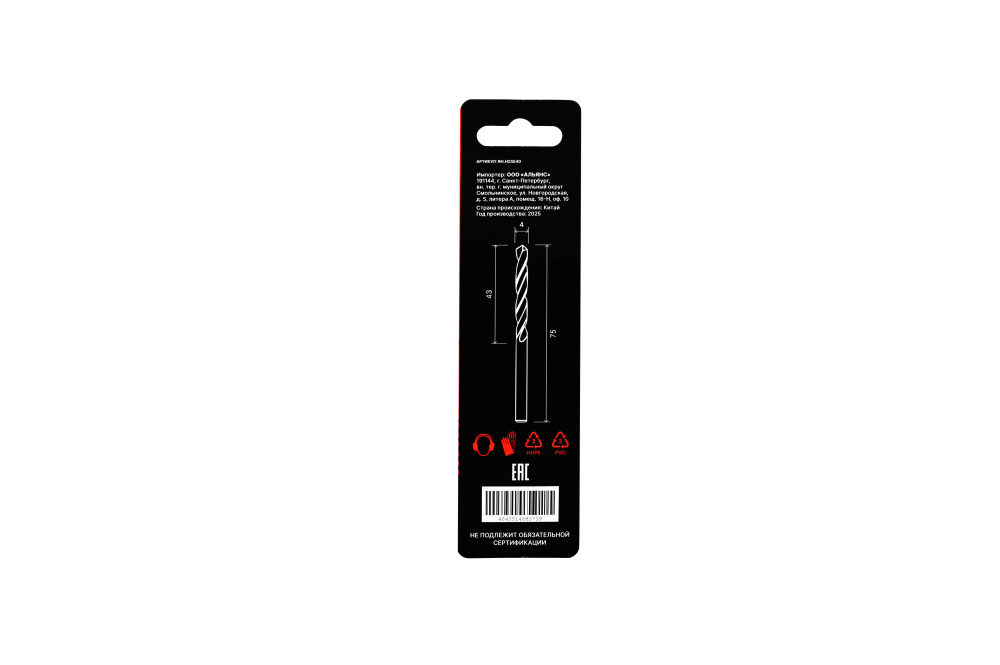 Сверло по металлу ц/х 4х75х43 HSSE-CO5 DIN 338 135 градусов, 2 шт. (RE:HARD) RH.HSSE40