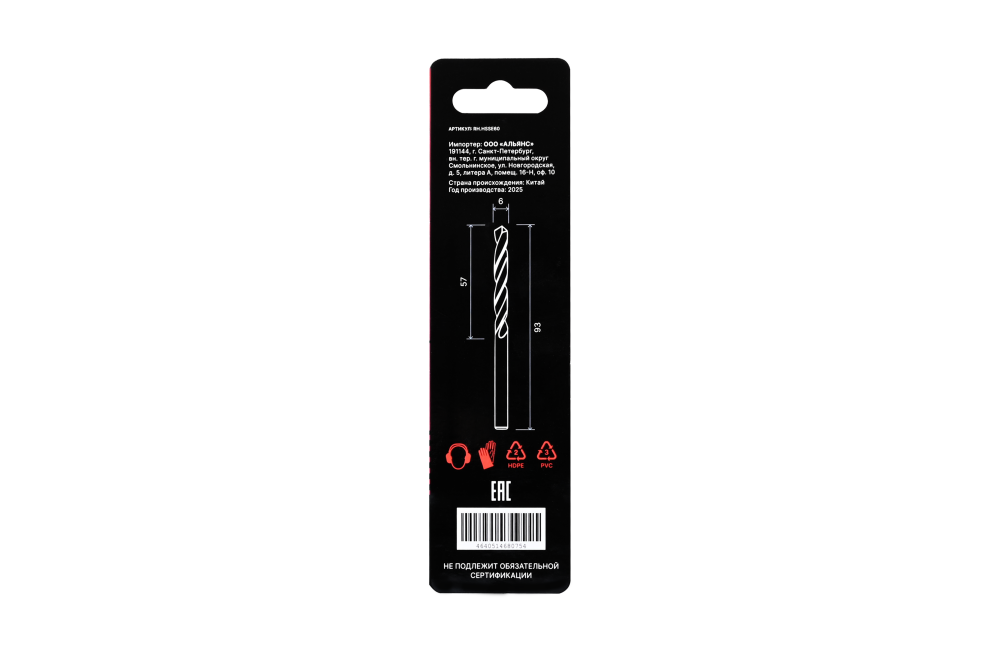 Полное описание товара Сверло по металлу ц/х 6х93х57 HSSE-CO5 DIN 338 135 градусов (RE:HARD) RH.HSSE60