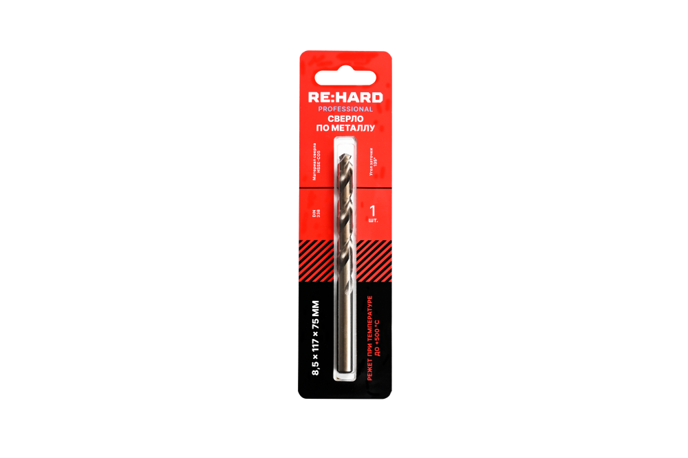 Полное описание товара Сверло по металлу ц/х 8.5х117х75 HSSE-CO5 DIN 338 135 градусов (RE:HARD) RH.HSSE85