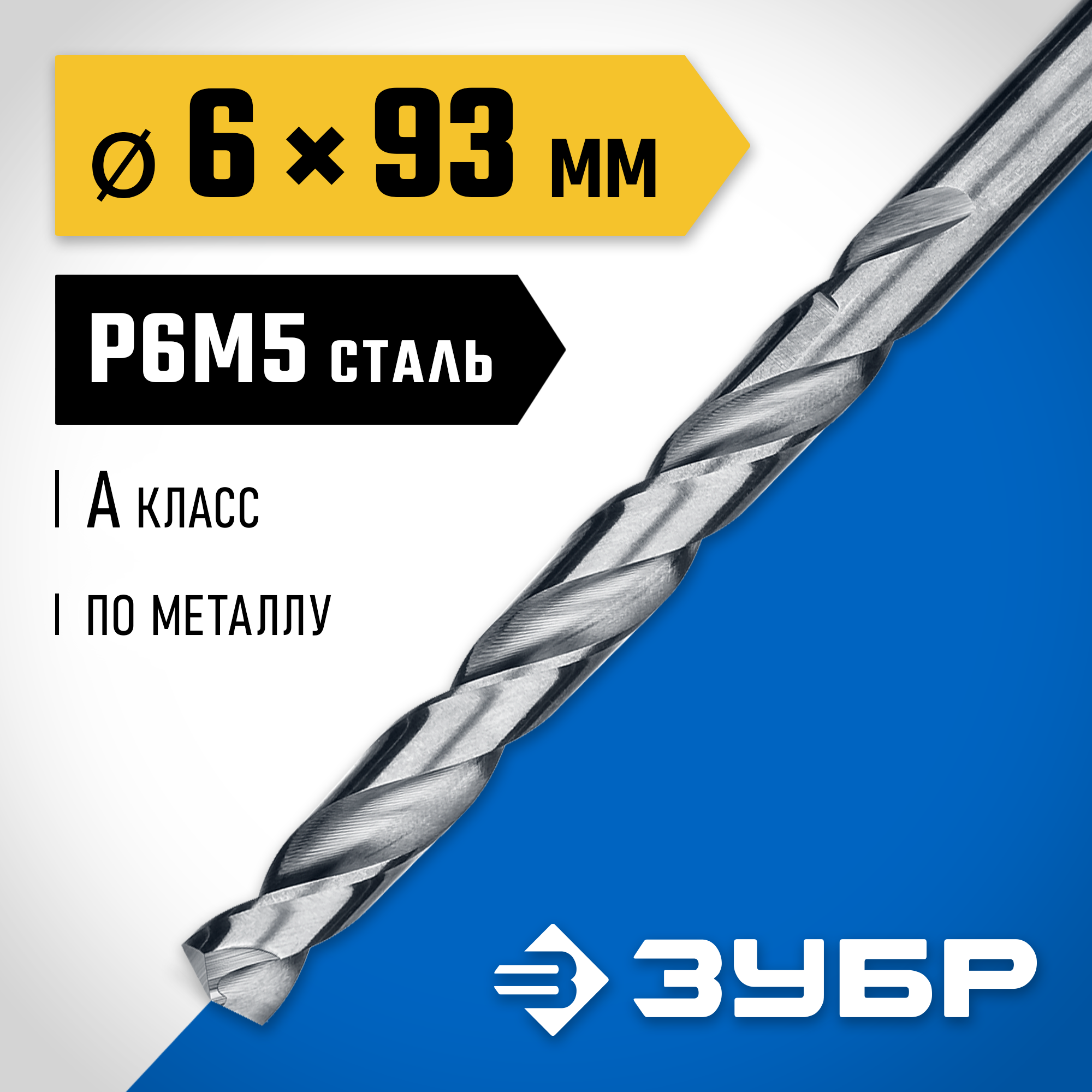 Сверло по металлу сталь Р6М5 класс А, ПРОФ-А 6.0х93мм (ЗУБР) 29625-6