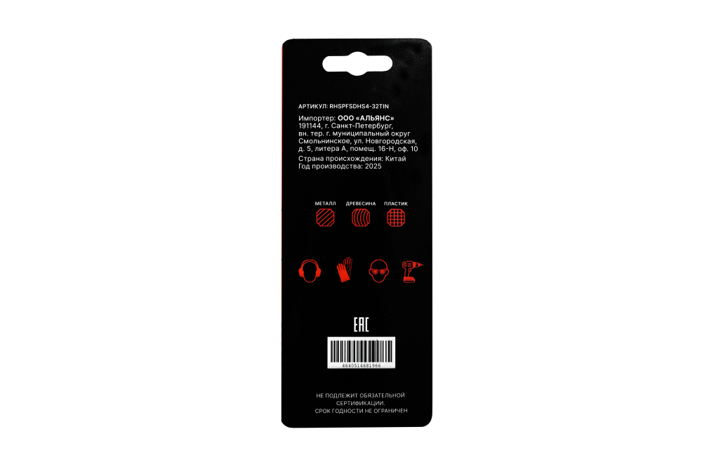 - Материал изделия: Сталь быстрорежущая (HSS-TIN)