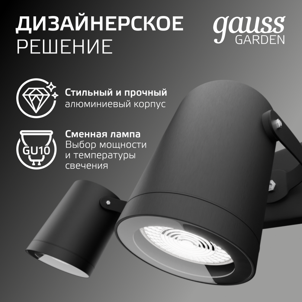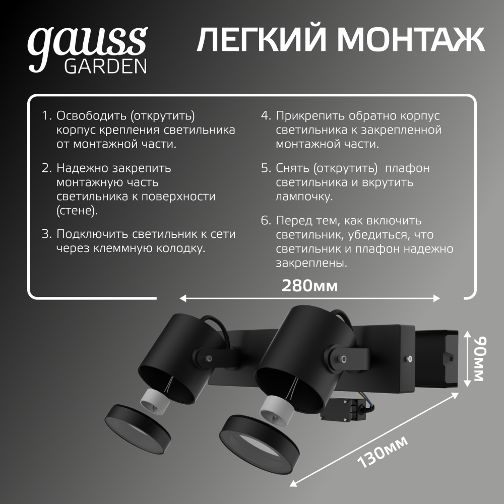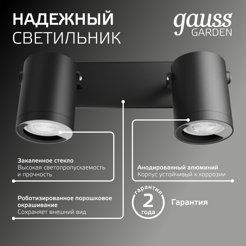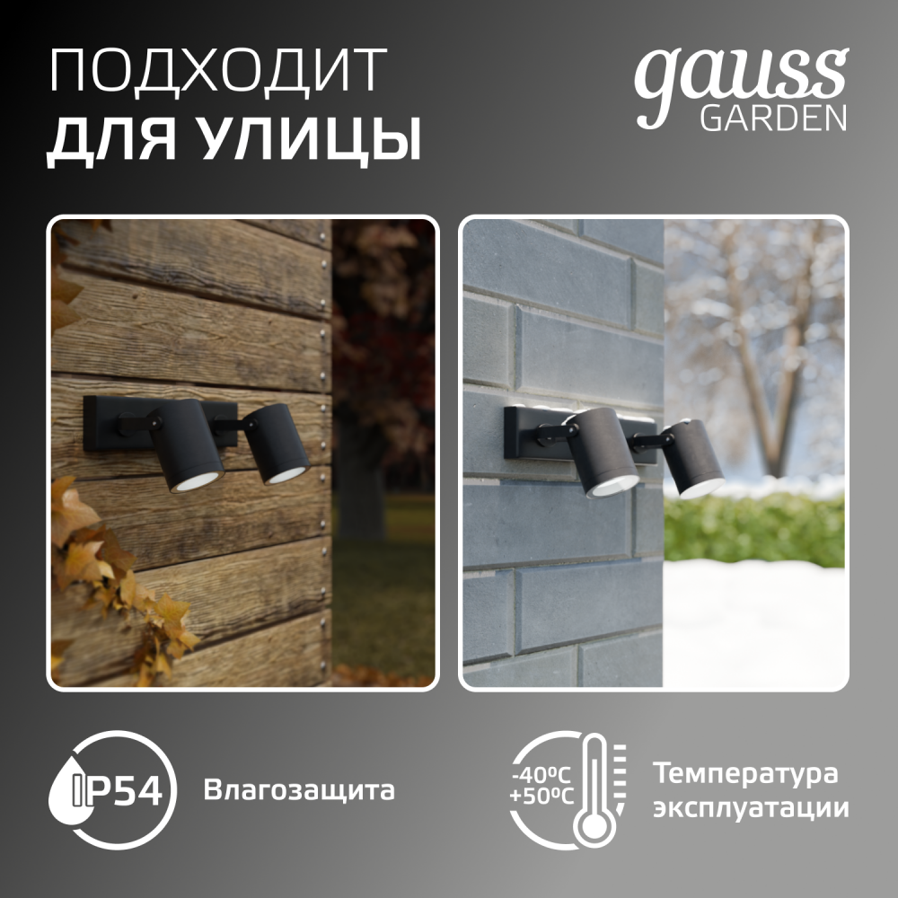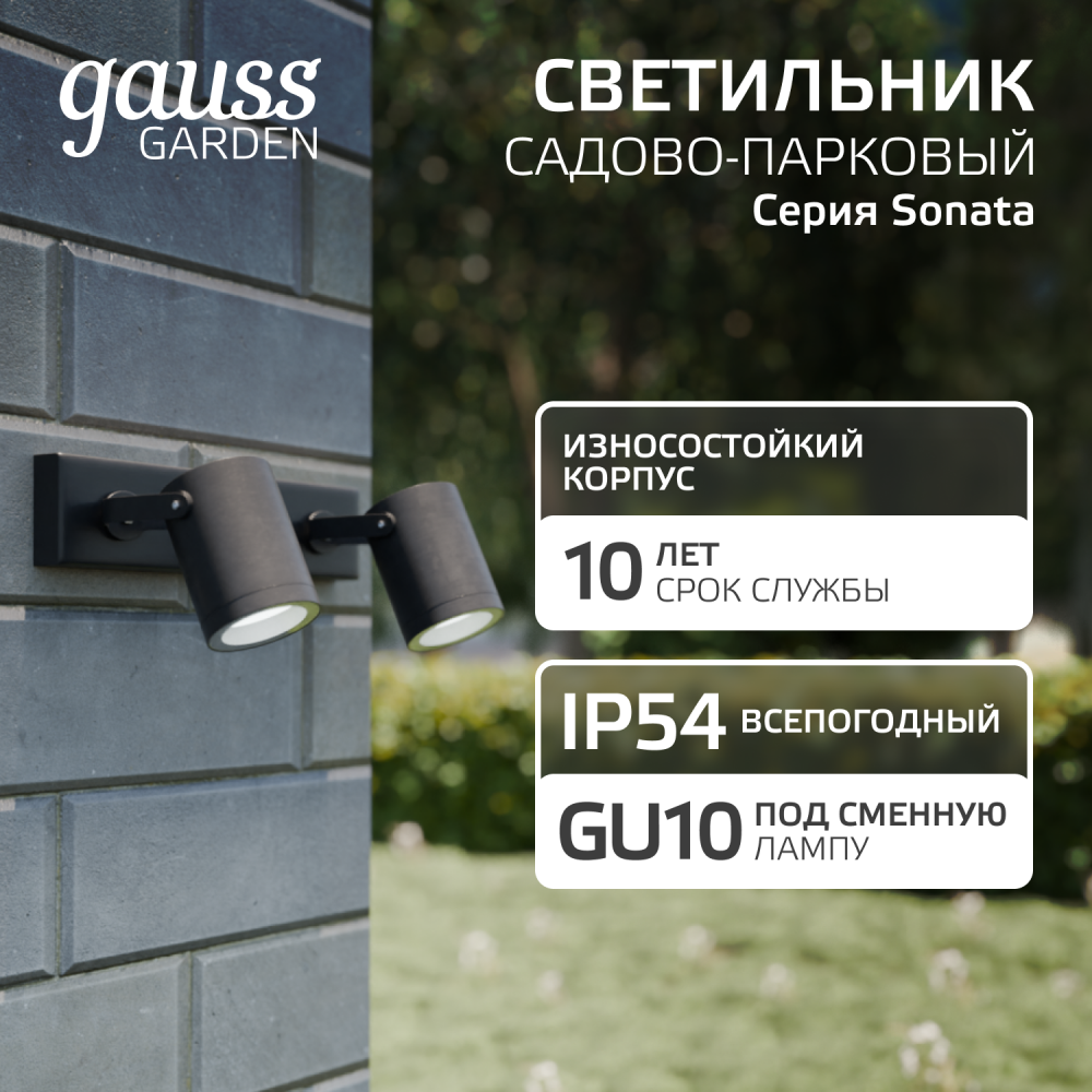 Полное описание товара Светильник архитектурный ДБУ под лампу 35 Вт 2хGU10 AC 220В IP54 280х90х130мм Sonata (GAUSS) GD153
