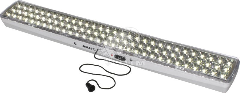 SKAT LT-902400 Li-ion – осветительный прибор высокой мощности, используемый для обеспечения аварийного освещения при отсутствии электроэнергии. В светильнике установлены 90 светодиодов, которые работают от аккумулятора Li-ion (3,7 В, 2400 мАч). Может эксплуатироваться в двух режимах.