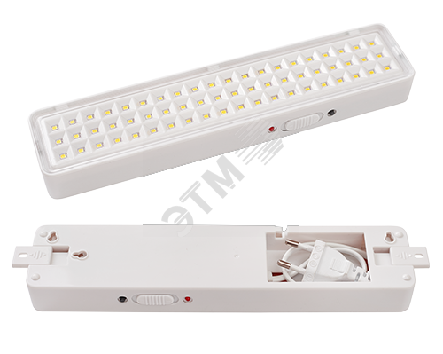 Светильник является автономным и предназначен для обеспечения эвакуационного и резервного освещения в случае прекращения подачи электроэнергии. При подключении к сети 220 В светодиоды не включаются. При пропадании сети 220 В светильник автоматически переходит на работу от встроенного аккумулятора, при этом включаются 60 светодиодов.