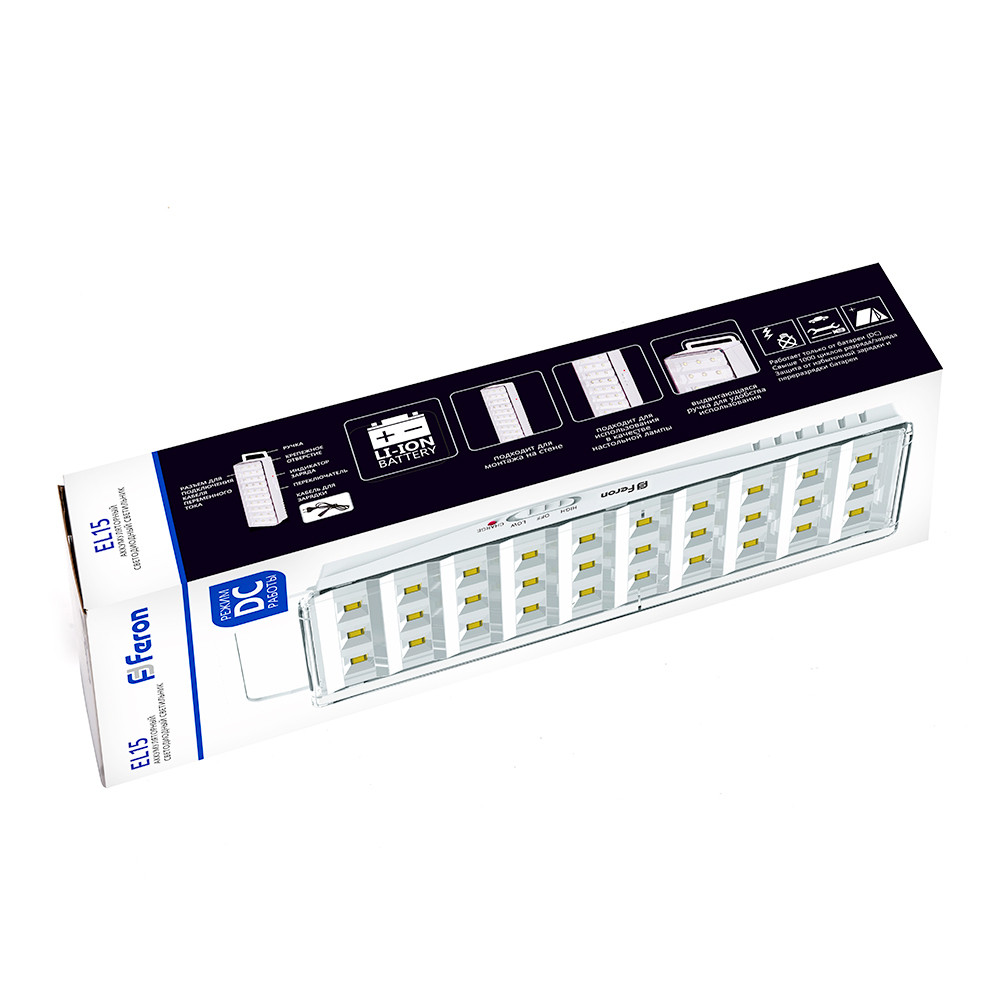 Полное описание товара Светильник аварийный светодиодный LEDх30 6ч непостоянный IP20 (FERON) EL15 12896