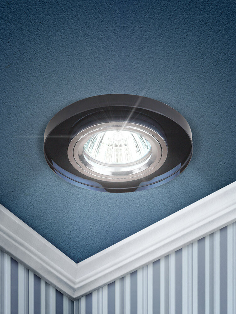 Светильник декор стекло круглое MR16,12V/220V, 50W, хром/черный DK7 CH/BK (ЭРА) C0043793