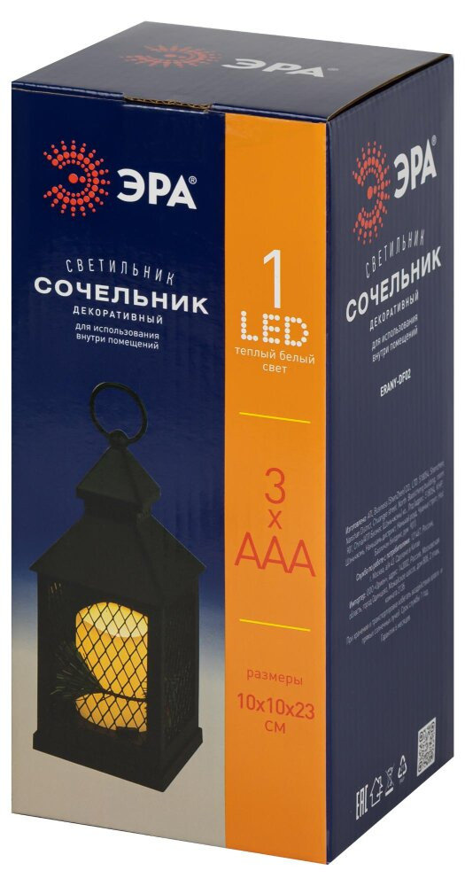 Полное описание товара Светильник декоративный новогодний Сочельник, черный, 1 LED, 3*AАA, 10x10x23 см ERANY-DF02 (ЭРА) Б0060488