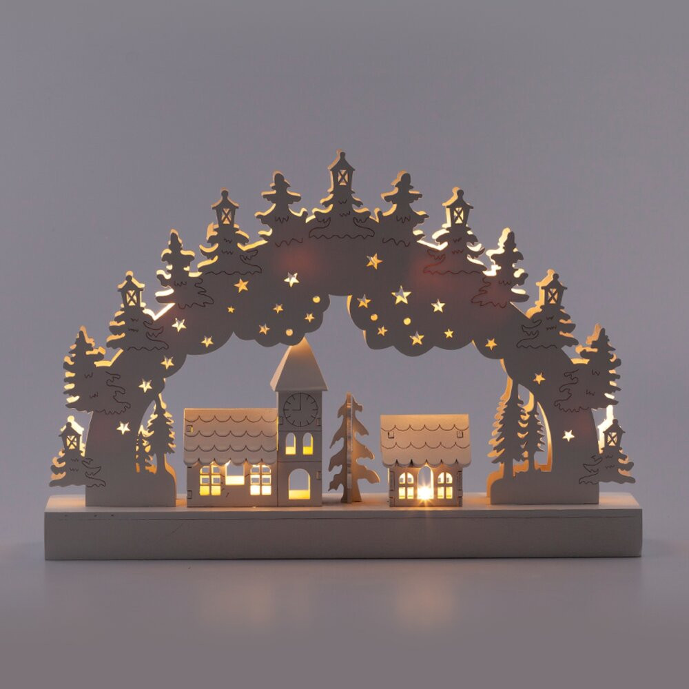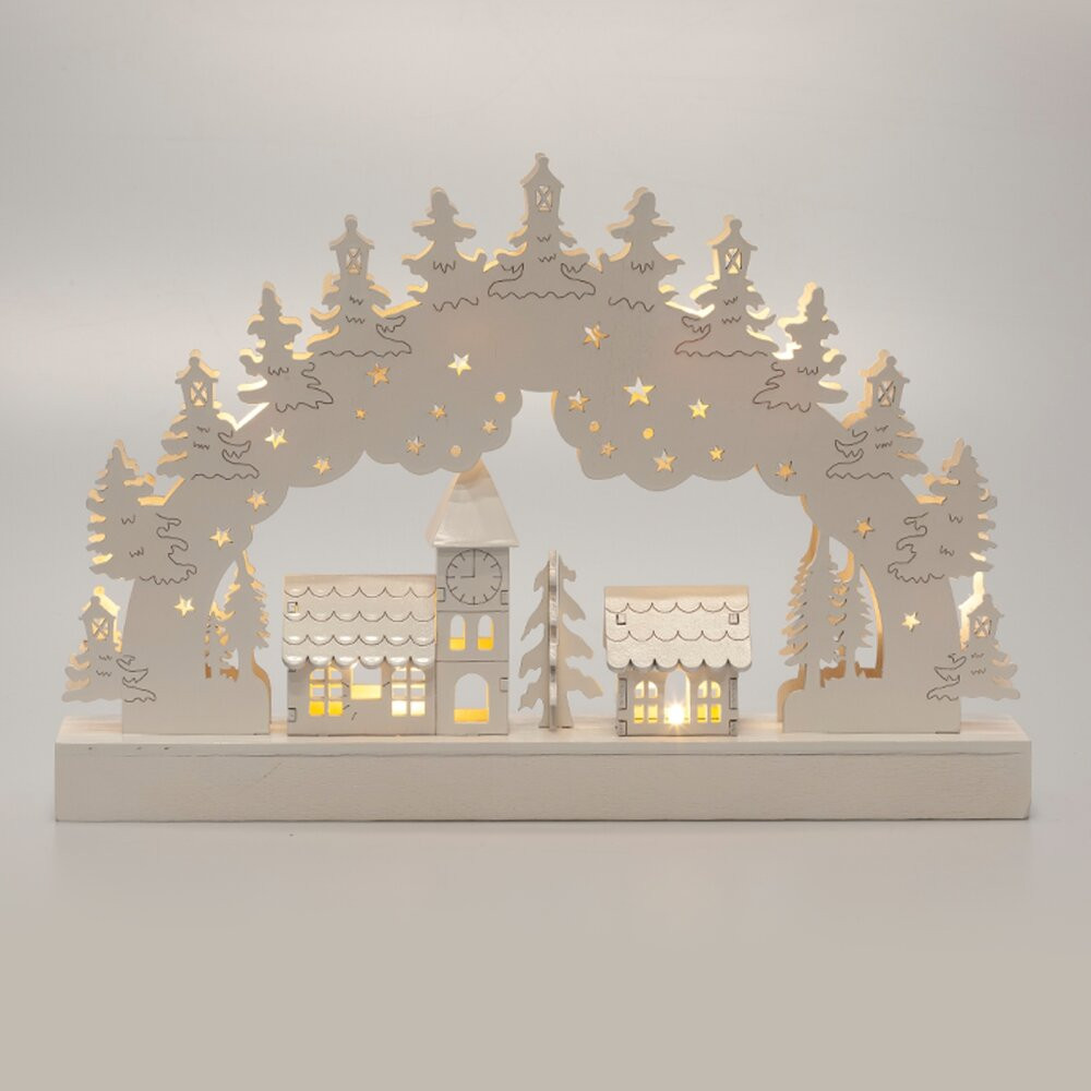 Праздничная светодиодная фигура EGNDS-02 Зима 30 х 20 см с приятным тёплым светом создаст в Вашем доме неповторимую новогоднюю атмосферу. Этот деревянный декоративный светильник украсит любую комнату, включая спальню: приглушенный свет позволяет использовать его в качестве ночника. Светильник работает от 2 батареек AA и имеет класс защиты IP20 (рекомендуется использовать внутри помещений). Настольный зимний светильник с домиками и елочками - это отличный подарок на Новый год и Рождество для любимых. Такой новогодний декор для дома всегда дарит ощущение праздника!