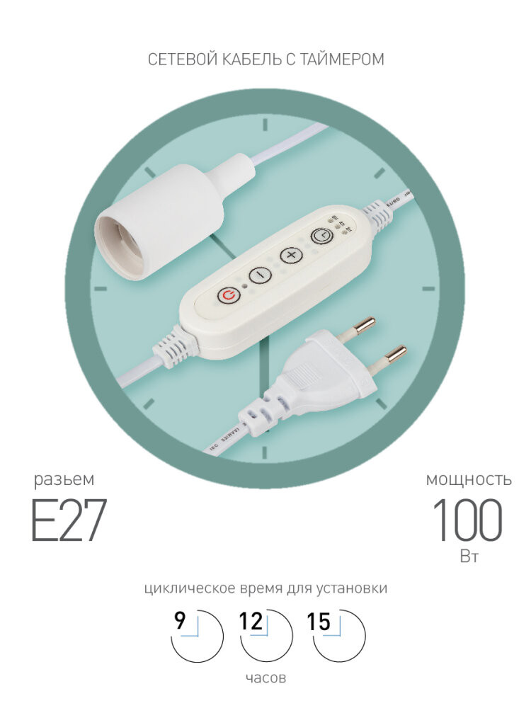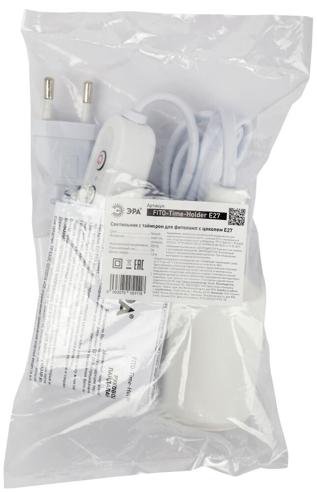 Светильник для растений FITO-Time Holder E27 с проводом и таймером для фитоламп с цоколем Е27 (ЭРА) Б0059882