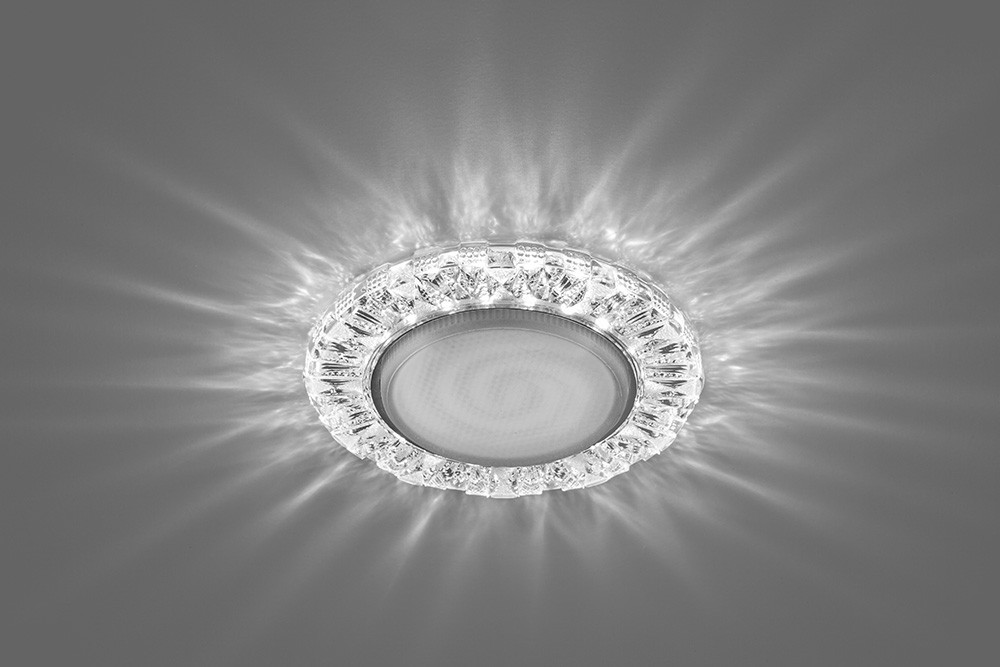 Светодиодный светильник разработан специально для натяжных потолков и подвесных систем. Применяется как для декоративной подсветки, так и для основного освещения помещений. Особенностью новых моделей светильников является подсветка кристаллов при помощи светодиодной ленты расположенной по периметру светильника, что обеспечивает возможность отдельного включения светодиодной подсветки или лампы (при подключении к разным выключателям).
