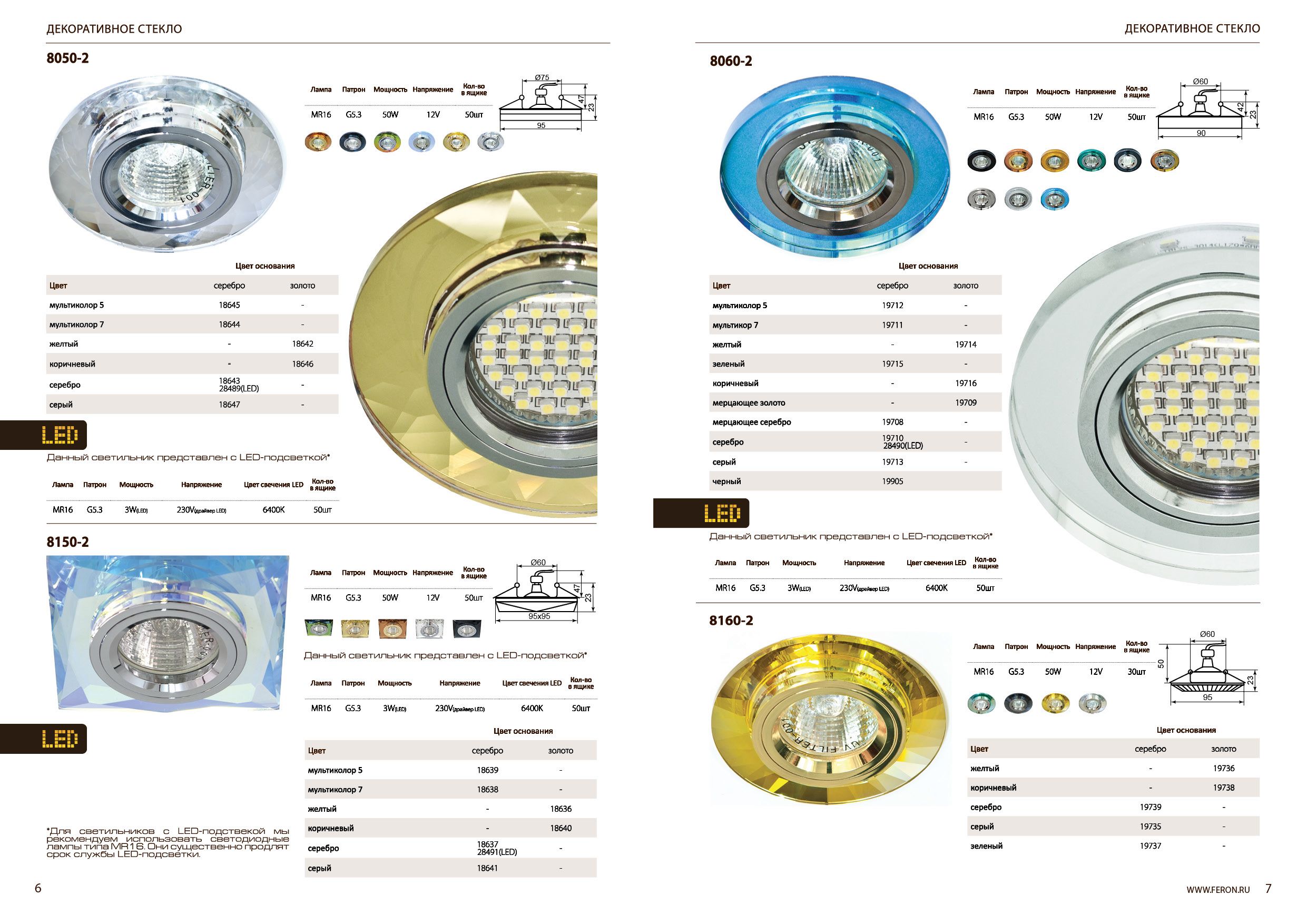 Полное описание товара Светильник ИВО-50w 12в G5.3 квадратный серебро с серым стеклом (FERON) 8150-2 сереб/сер.