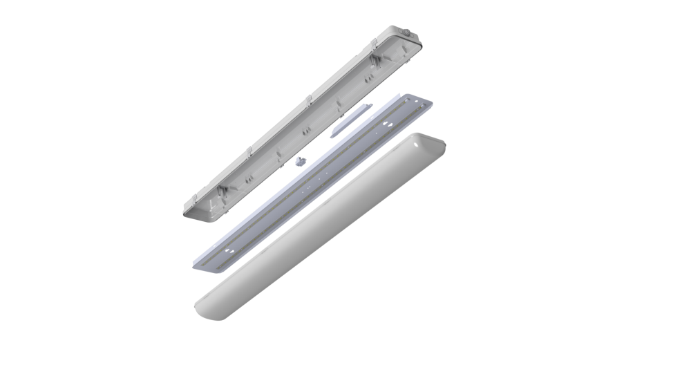 Корпус светильников ЛПП-CSVT изготовлен из пластика ABS. ABS пластик обладает высокой жесткостью (модуль упругости составляет 2000-2700 МПа) и стойкостью к ударным нагрузкам. Пускорегулирующая аппаратура (ЭПРА - модель CIMEX) смонтирована на съемной металлической пластине. Светильник комплектуется прозрачным плафоном из полимерного пластика SAN. Плафон крепится на корпус светильника пластиковыми защелками. Стиролакрилонитрил (SAN) обладает высокой жесткостью (прочность при растяжении составляет 65-85 МПа) и лучшей стойкостью к удару по сравнению с полистиролом (PS). Полистирол по сравнению с PC и SAN является менее жестким (прочность при растяжении составляет 40-65 МПа) и очень хрупким материалом. В связи с этим компания CSVT в отличие от других производителей не использует полистирол (PS) в производстве своих светильников.