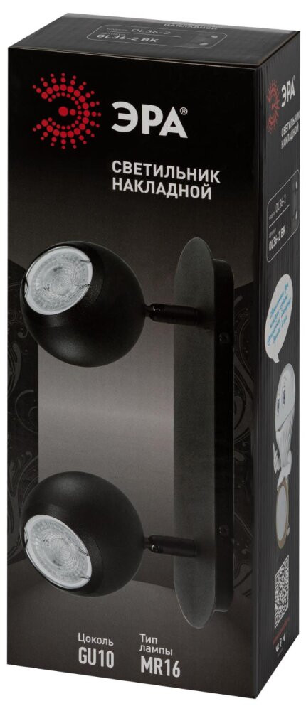 Полное описание товара Светильник настенно-потолочный спот OL36-2 BK MR16 GU10 IP20 черный (ЭРА) Б0056370