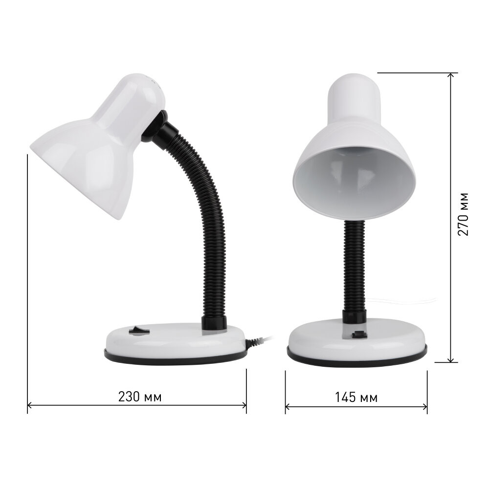Металлический плафон. Направление света регулируется гибкой стойкой, которая обеспечивает наклон и поворот плафона в любом направлении. Выключатель на прищепке. Классический дизайн.Предназначен для использования с лампой накаливания или компактной люминесцентной лампой (КЛЛ): максимальная мощность 40W, цоколь E27, 220V 50HZ, лампа в комплект не входит.