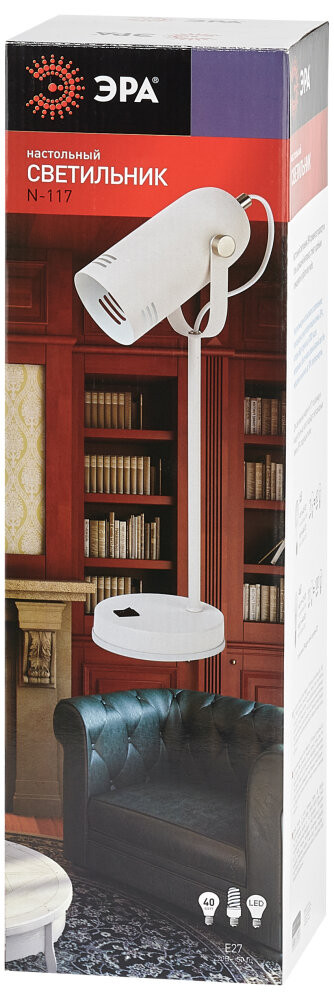 Полное описание товара Светильник настольный N-117-Е27-40W-W белый (12/48) (ЭРА) Б0047192