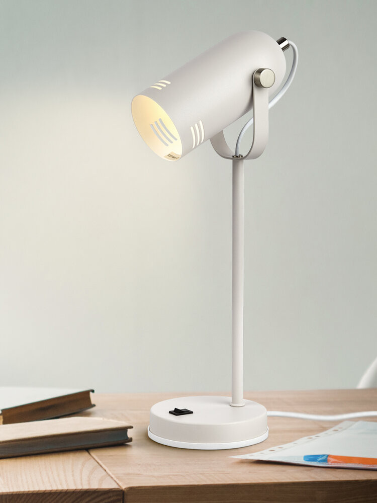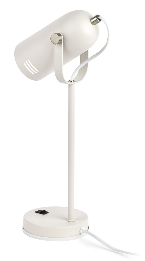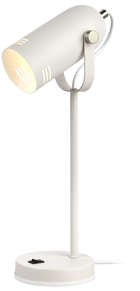 Красивый и удобный настольный светильник ЭРА N-117-Е27-40W-W в стильном `ретро` корпусе. Может использоваться с разными источниками света - лампой накаливания, компактной люминесцентной лампой (КЛЛ) или светодиодной (LED) лампой. Прочный металлический корпус украшен гальванизированными элементами. Подвижный плафон позволяет регулировать направление света. В числе преимуществ для комфортного использования - устойчивость конструкции и оптимальные размеры для размещения на столе. Трендовый дизайн и актуальное сочетание цветов (белый корпус с матовыми серебристыми деталями) сделают этот светильник изюминкой интерьеров, особенно в стиле лофт или минимализм.