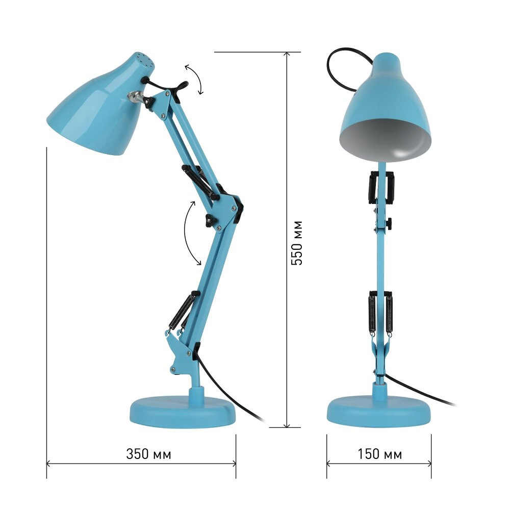 Настольный светильник ЭРА N-123-E27-40W-LBU трендового дизайна с классической конструкцией может использоваться с разными источниками света - лампой накаливания, компактной люминесцентной лампой (КЛЛ) или светодиодной (LED) лампой. Выключатель на проводе. Устойчивое основание. Высота плафона регулируется двухсекционной сгибающейся стойкой, направление света - поворотом и наклоном плафона в любом направлении.