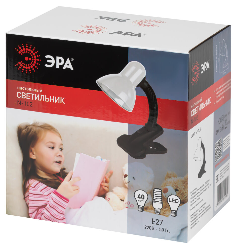 Полное описание товара Светильник настольный на прищепке белый N-102-E27-40W-W (ЭРА) C0041423