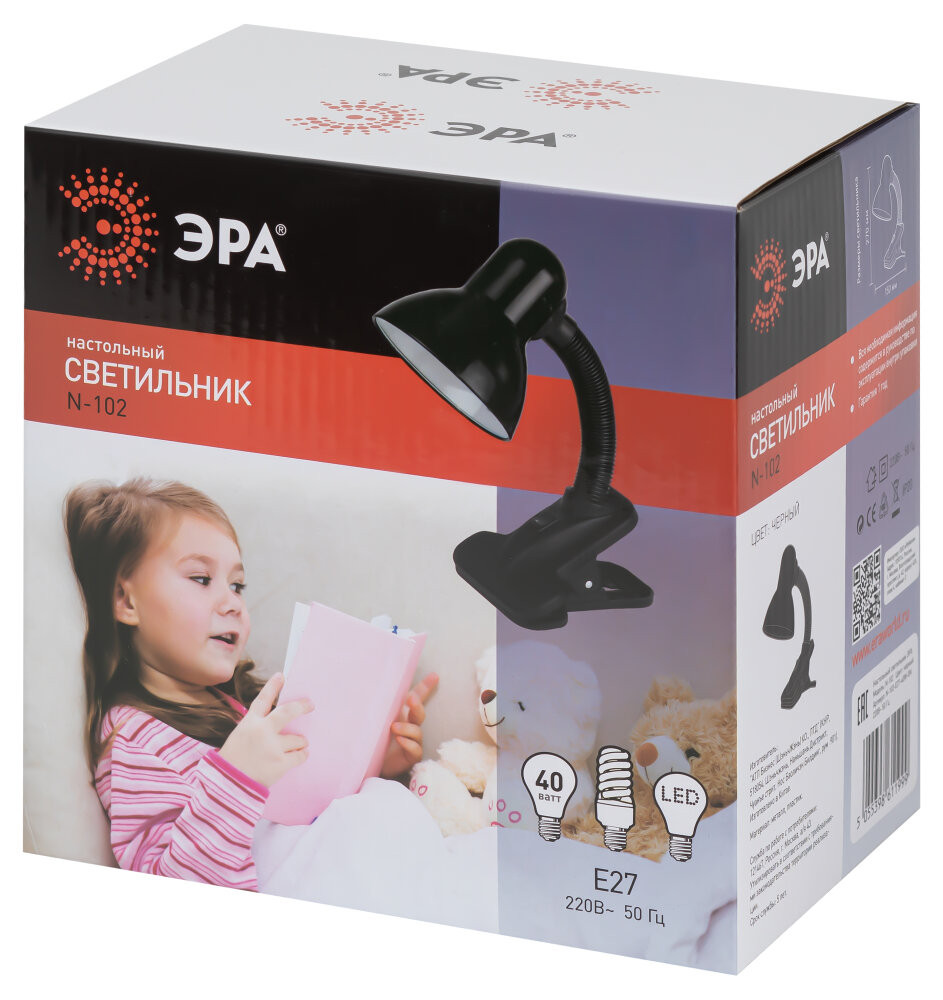 Полное описание товара Светильник настольный на прищепке черный матовый N-102-E27-40W-BK (ЭРА) C0041424
