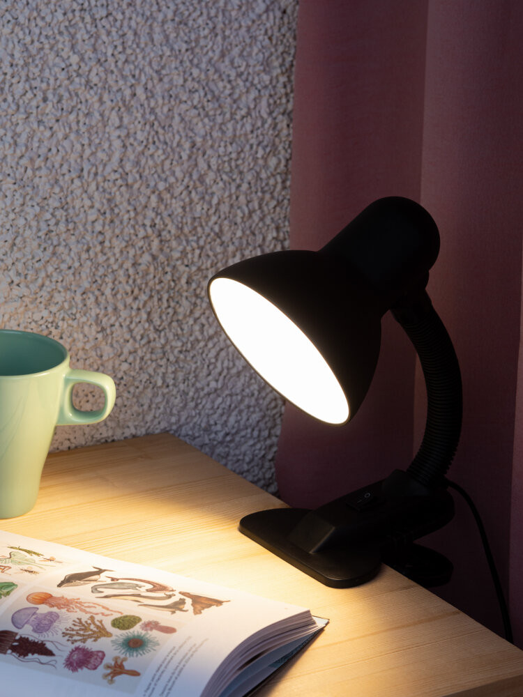 Светильник настольный на прищепке черный матовый N-102-E27-40W-BK (ЭРА) C0041424