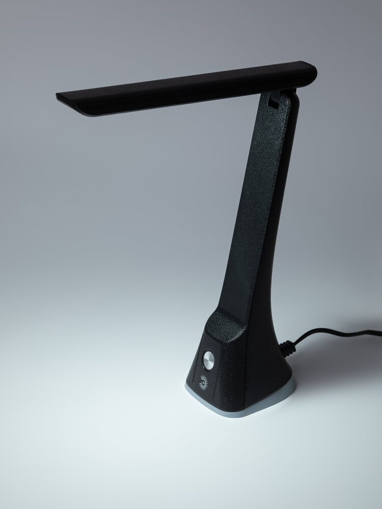 Настольный светильник со светодиодами (LED) в качестве источников света в дизайне 'под кожу'. Удобная складная модель с сенсорным уравлением и трехступенчатым диммером для регулировки яркости. Яркий белый свет - цветовая температура 6000К.