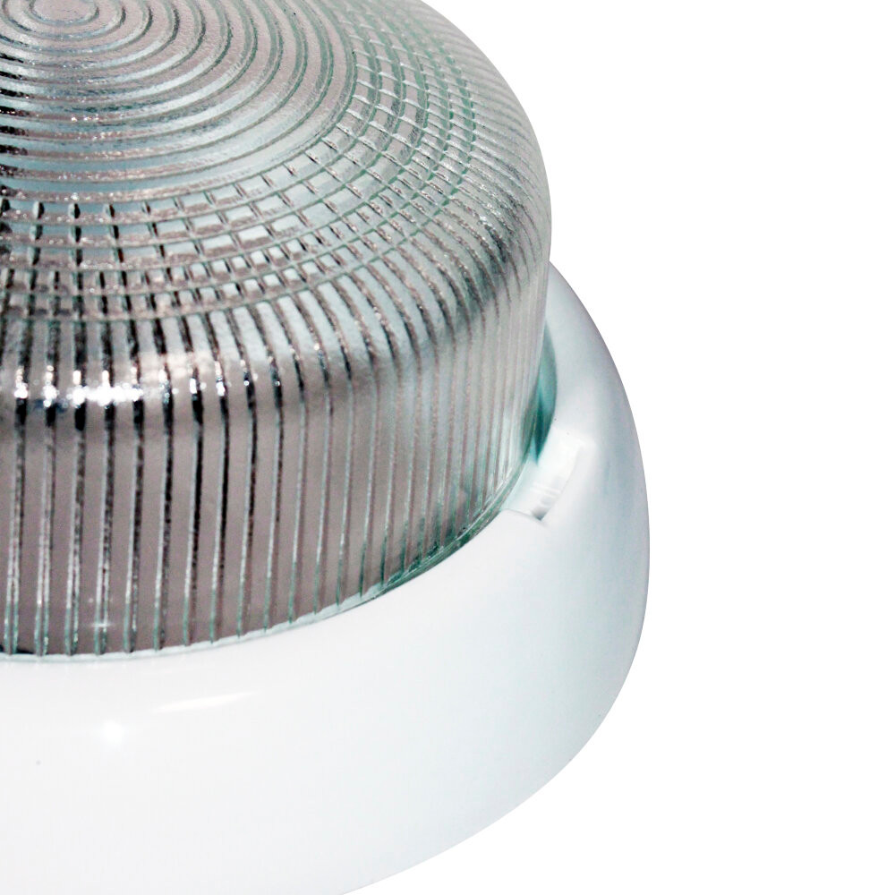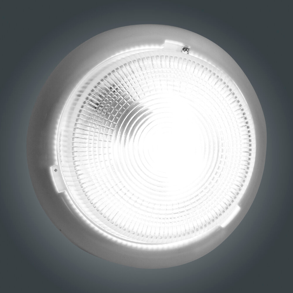 Рассеватель из стекла при помощи байонетного соединения надежно соединяется с корпусом из прочного пластика, обеспечивая пылевлагозащищенность светильника IP44. Керамический патрон Е27, позволяет в качестве источника света использовать светодиодную лампу или лампу накаливания мощностью до 60 Вт.