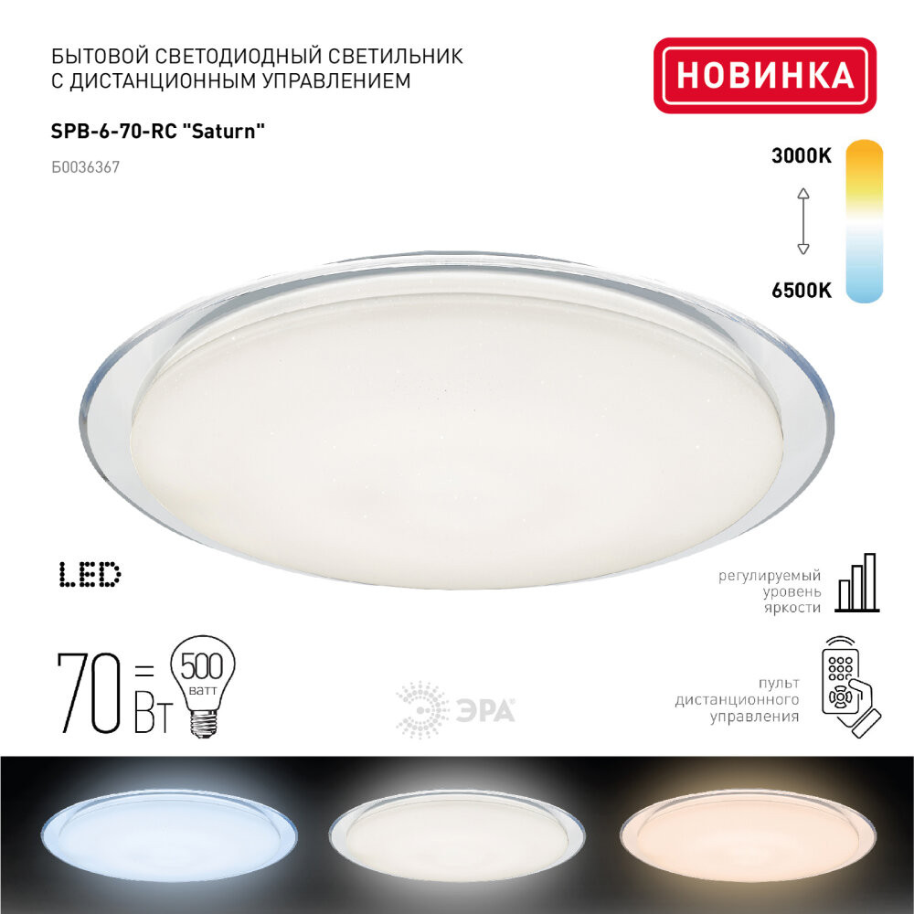 Полное описание товара Светильник потолочный светодиодный Классик с ДУ SPB-6-70-RC Saturn 70Вт 3000-6500К с ДУ прозрачный кант (ЭРА) Б0036367