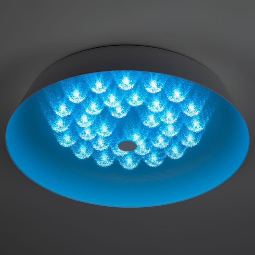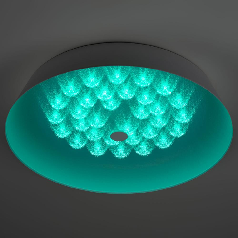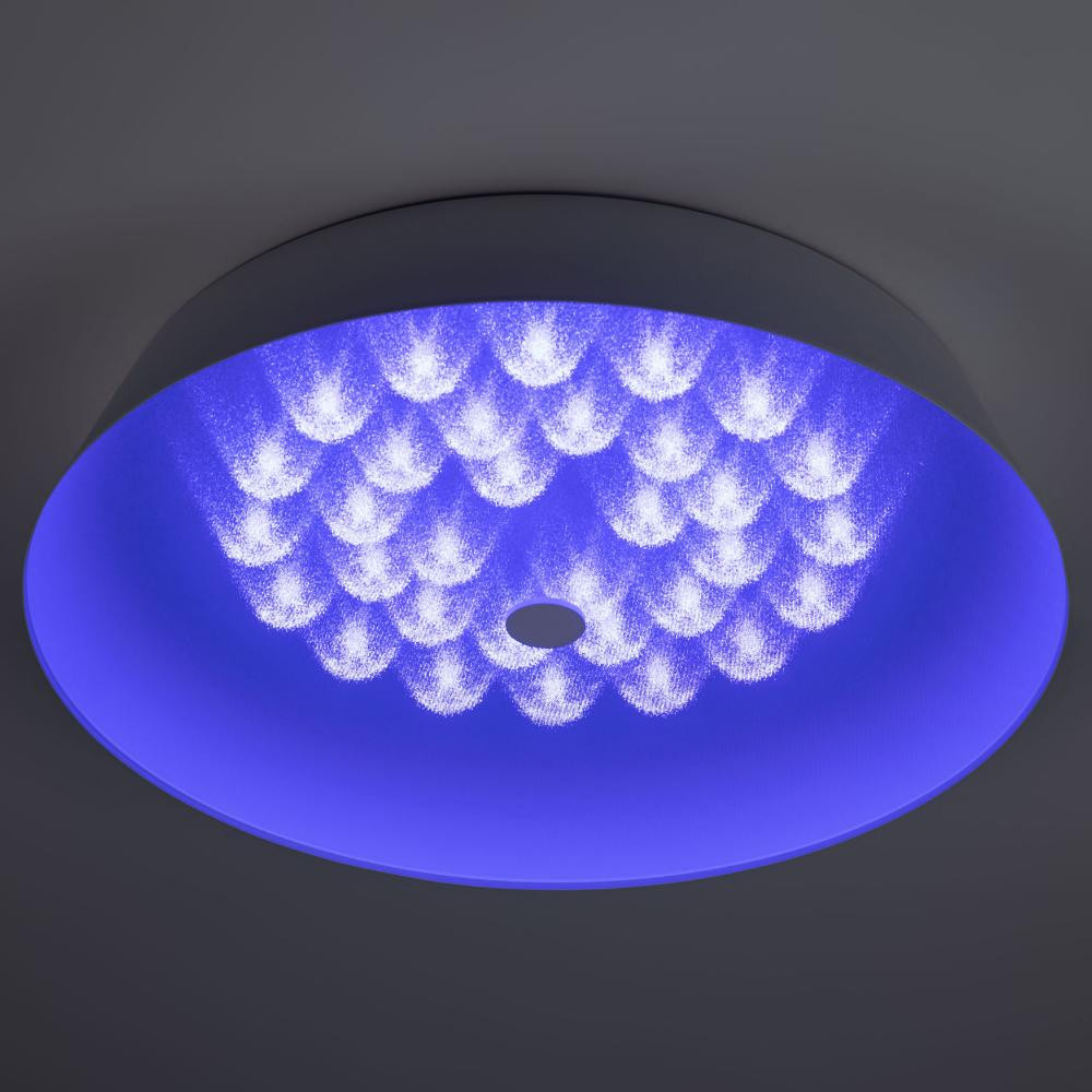 Накладной потолочный светильник LOCUS RGB. Модель подойдет для создания основного освещения в помещении. Светильник комплектуется современным призматическим рассеивателем, придающим ему футуристичный вид за счет 3D эффекта, и защищающим от ослепления светом. В комплекте поставки есть пульт ДУ, с помощью которого можно настраивать яркость, цветовую температуру, а также управлять режимами RGB подсветки.