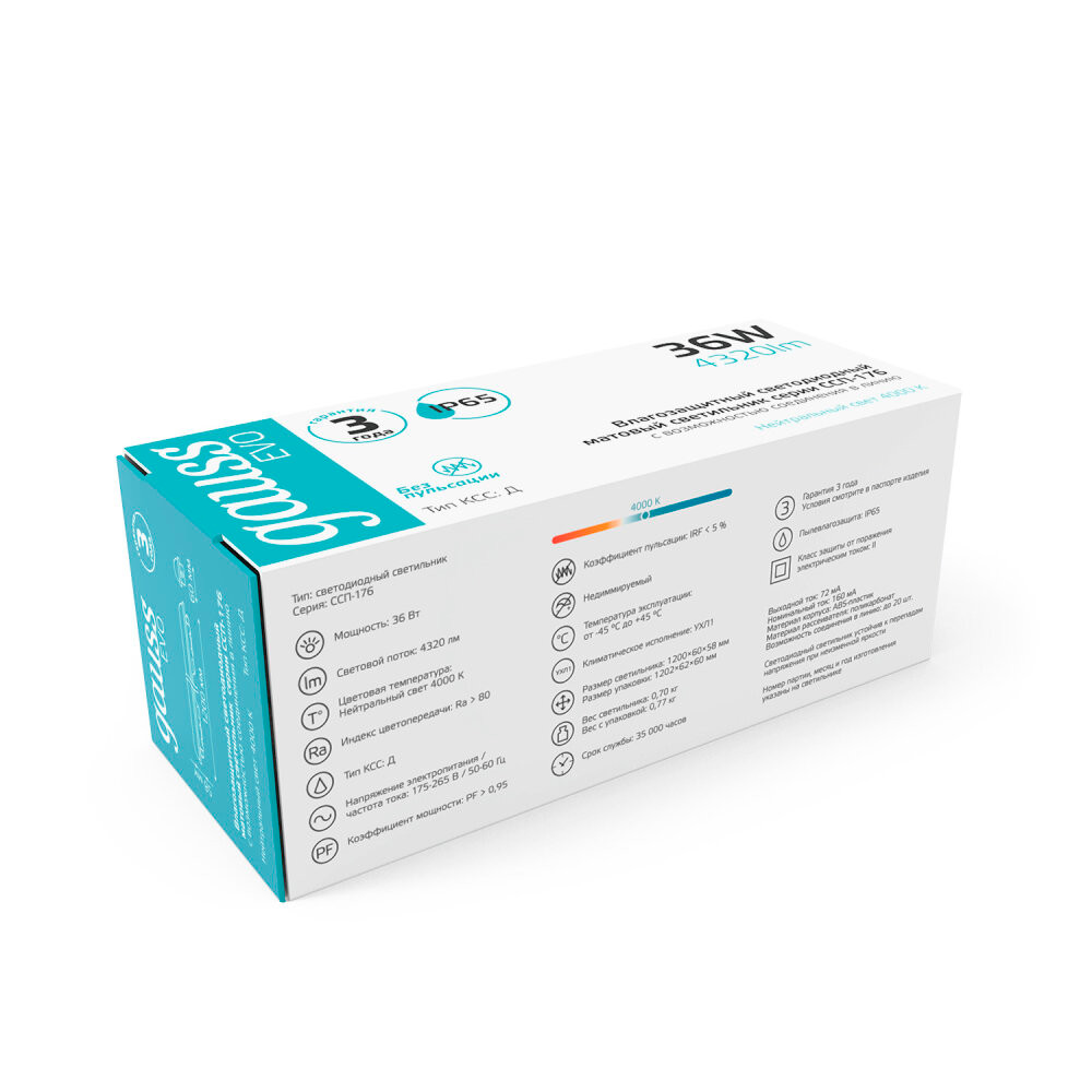 Полное описание товара Светильник промышленный линейный ДСП 36 Вт 4320 лм 4000К AC 220В IP65 1200х58х60мм ССП-176 матовый сквозная проводка соеденяется в линию EVO Gauss (GAUSS) 864425236